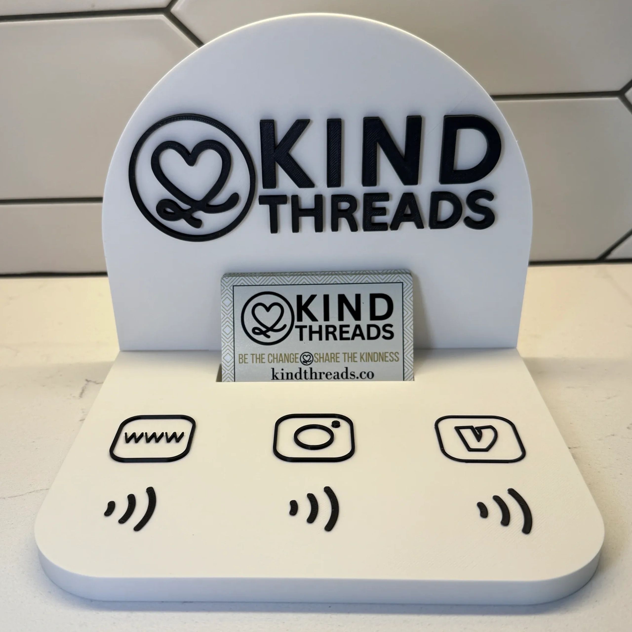 Each Vendor Tap is a NFC-enabled display created specifically for small-business owners and vendors who want a clean, efficient way for customers to connect. Each stand includes NFC tap points that can be programmed to open your website, social media pages, digital business card, or payment links.